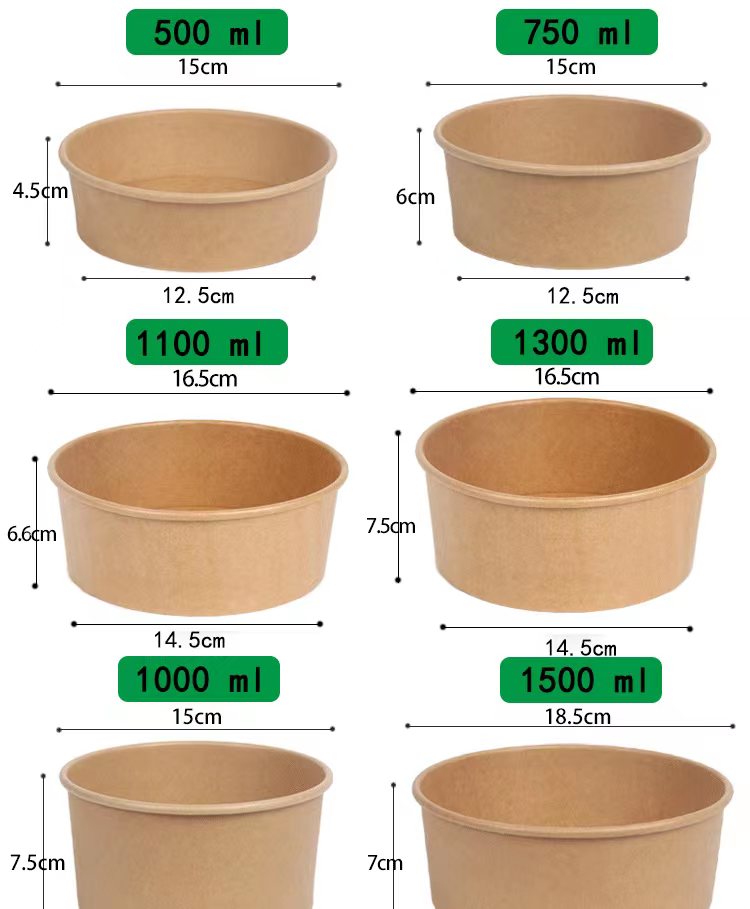 أوعية ورق طعام يمكن التخلص منها ذات نوعية جيدة مع أغطية، فهي تتمتع بأفضل خصائص الختم وتعتمد سمك ورق الكرافت والورق الأبيض، ومواصفات وأحجام مختلفة يمكن أن تلبي احتياجاتك المختلفة.​