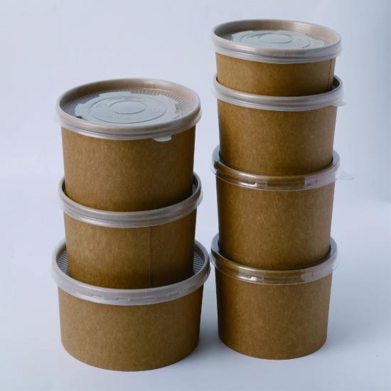 وعاء ورق كرافت للاستعمال مرة واحدة بسعر المصنع مع أغطية للسلطة/النودلز/الوعاء الساخن/الحساء/الحلوى وغيرها من عبوات المواد الغذائية.