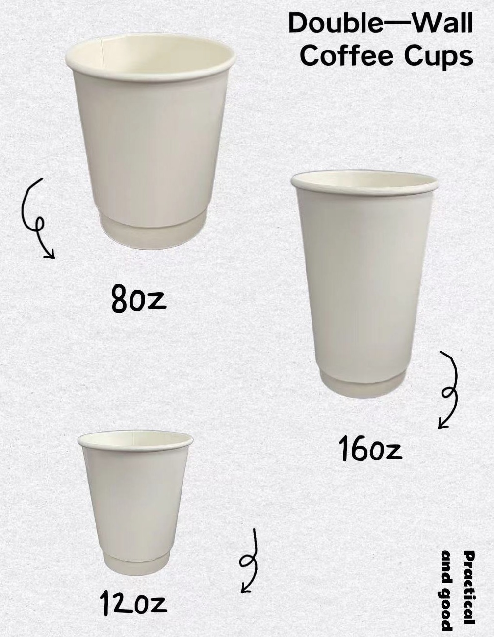 أكواب ورقية للقهوة بتصميم مضاد للحرق بجدار مزدوج يمكن التخلص منها.