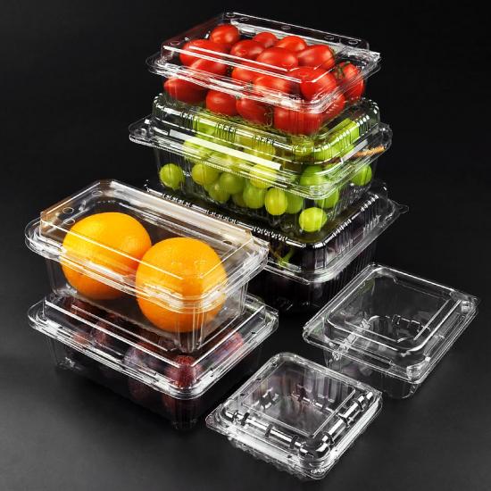 مواد PET عالية الشفافية واضحة من الصناديق البلاستيكية ذات الأحجام الصغيرة إلى الكبيرة لتغليف الفواكه.