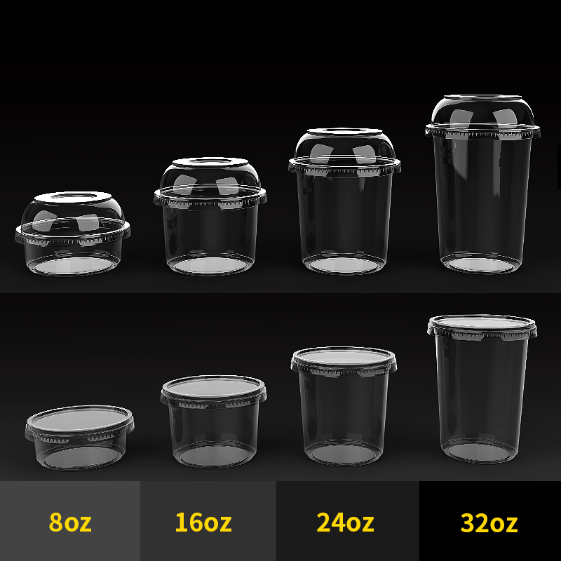 4. الشفافية والمظهر: تتميز الأكواب البلاستيكية PET بشفافية جيدة ويمكنها عرض الأطعمة والمشروبات في الكوب بوضوح. بالإضافة إلى ذلك، يمكن تخصيص الأكواب البلاستيكية PET من خلال الطباعة والملصقات لتعزيز صورة العلامة التجارية والقدرة التنافسية في السوق.